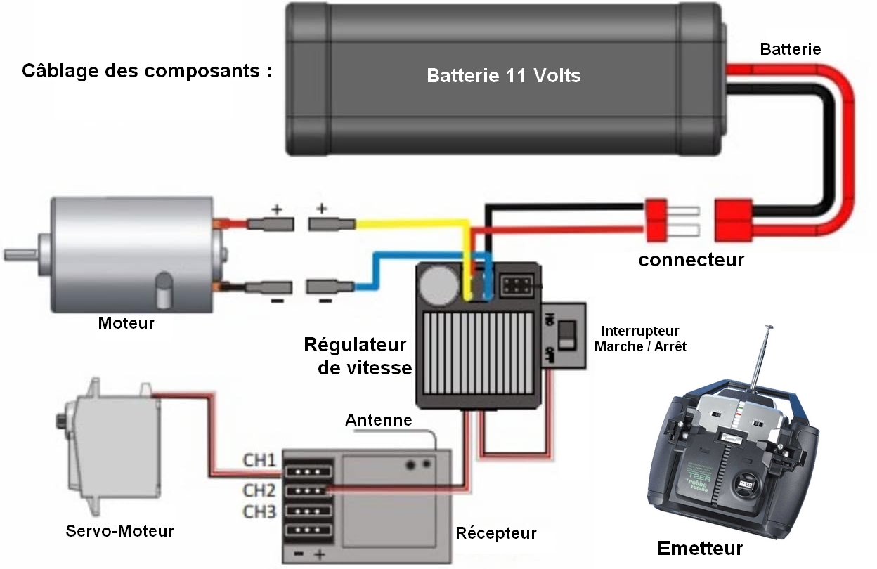 Echangez avec votre groupe afin d’identifier et de replacer correctement les « blocs fonctionnels » dans les rectangles bleu ou orange (marqué une * ) puis placer en dessous les solutions techniques (composants de la voiture Radio Commandée RC) réalisant concrètement la fonction de chaque bloc fonctionnel.