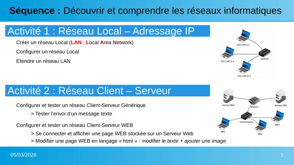 Cette activité permettra de facilement comprendre les grands principes des réseaux informatiques, le vocabulaire associé.