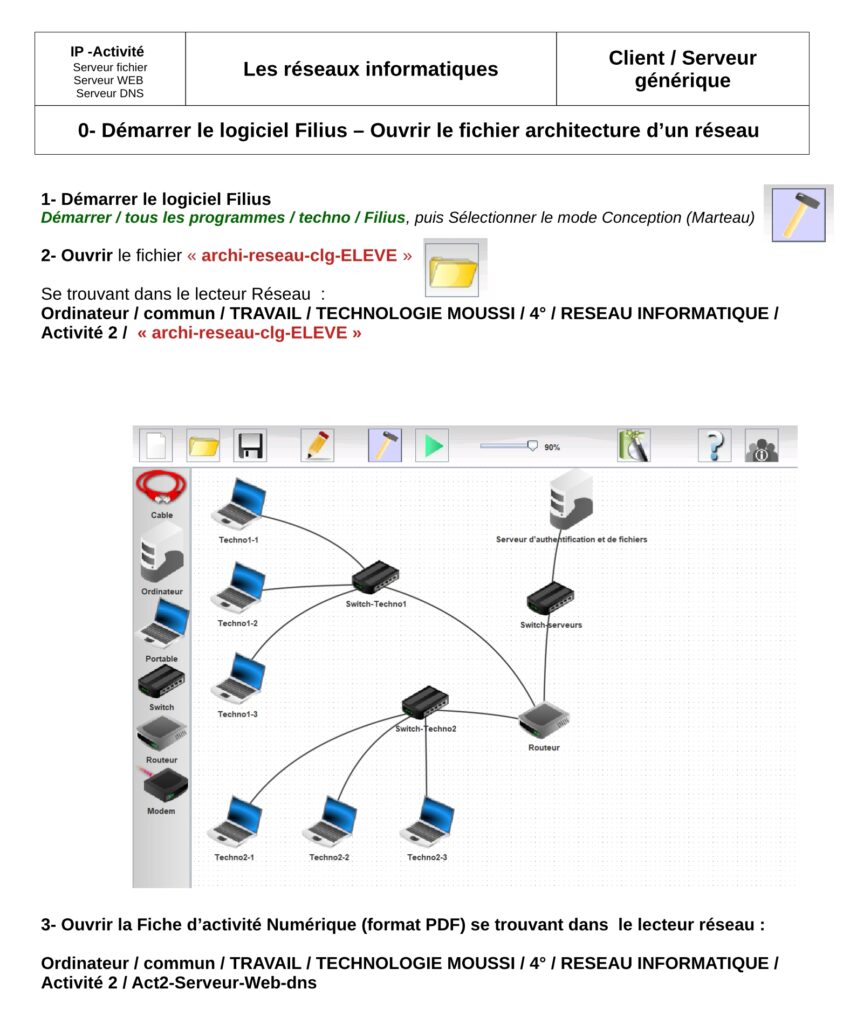 Introduction : Dans cette activité vous aller utiliser un Logiciel de Simulation pour créer, configurer un réseau informatique.